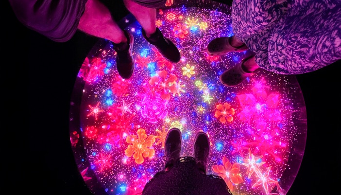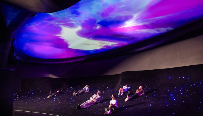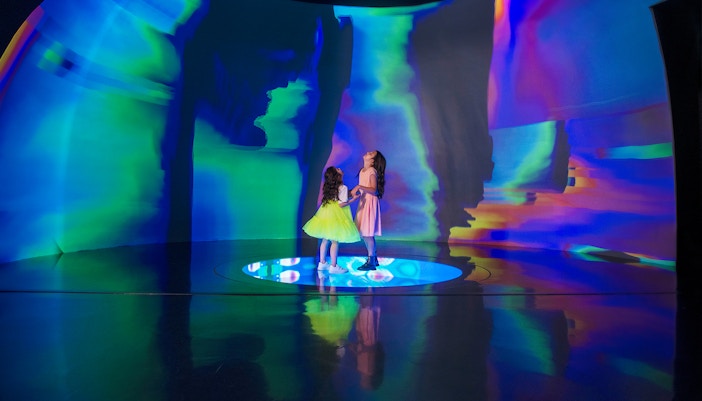 En esta zona interactiva de 230 metros cuadrados, utiliza la tecnología basada en el gesto para crear vibrantes obras de arte cósmicas. Observa cómo los charcos de polvo cósmico responden a los movimientos, produciendo un hipnótico despliegue de colores y ondas luminosas.