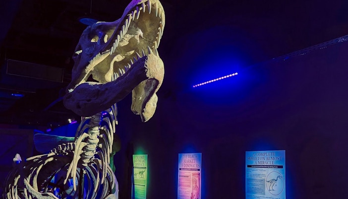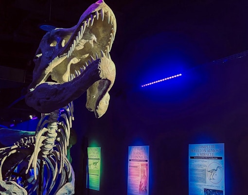 Tu viaje comienza en una fiel recreación de la zona de almacenamiento y reserva de un museo de historia natural. Los fósiles, los moldes de esqueletos y los objetos paleontológicos se exponen como lo harían entre bastidores en un museo en funcionamiento. Esta zona presenta la historia de la paleontología y explica cómo se descubren, conservan y estudian los fósiles. Deja pasar entre 10 y 15 minutos.