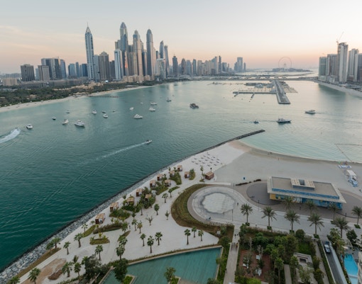 La baia di Jumeirah ospita diverse strutture di alto livello, tra cui il Jumeirah Beach Residence e il Palm Jumeirah.