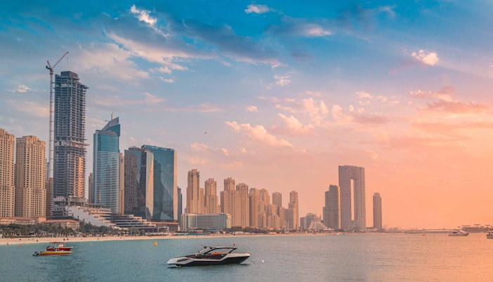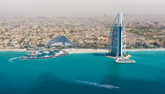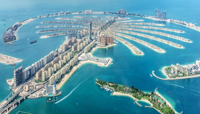 Bucurați-vă de vederi panoramice ale apelor turcoaz, ale plajelor nisipoase și ale liniei de coastă a Dubaiului în lumina blândă a dimineții.
