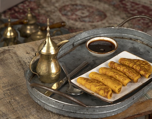 Loc autentic după zbor pentru micul dejun tradițional din Emiratele Arabe Unite, sub corturi beduine.