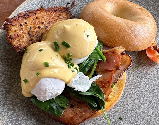 Un loc de luat masa rafinat care oferă un mic dejun relaxat sau un prânz devreme.