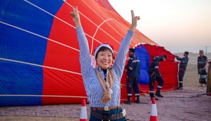 Experiențe de lux: Pentru o dimineață premium în deșert, experiența premium cu balonul cu aer cald combină zborul cu un mic dejun Michelin ridicat în deșert, cu extra-uri exclusive precum un spectacol cu drone.